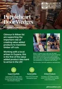 The Purpleheart door wedge is just the beginning. STS Inc is working hard on the development of a thriving value-added timber sector. www.fromtheguyanaforest.com shows some of these items. It takes time, prototypes, and hard work in training people to do the work.